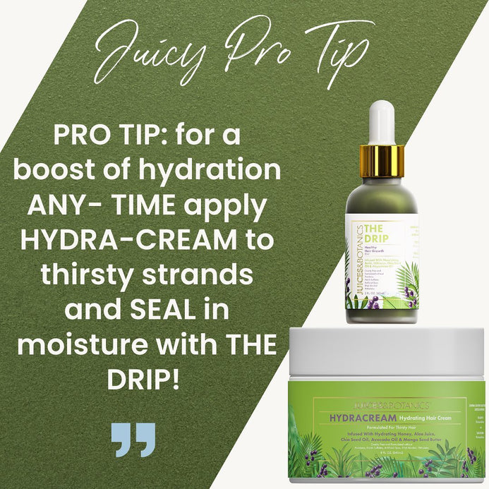 1. Start with HydraCream: Apply to wet or dry hair as a pre-styling moisturizer or re-hydrator to ensure your strands are well-hydrated and manageable.